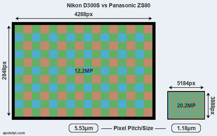 | Sensor Specs | Nikon D300S | Panasonic ZS80 |