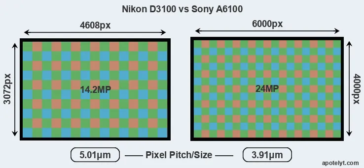 | Sensor Specs | Nikon D3100 | Sony A6100 |