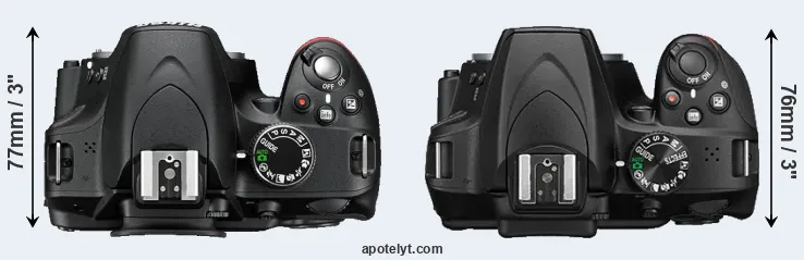 | 1. | Nikon D3200 | 125 mm | 96 mm | 77 mm | 505 g | 540 | n | Apr 2012 | US$ 599 | ebay.com | |