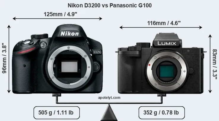 Size Nikon D3200 vs Panasonic G100