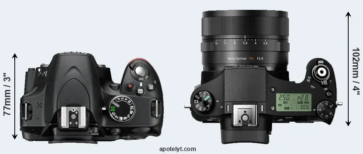 The above size and weight comparisons are to some extent incomplete and possibly misleading, as the RX10 II has a lens built in, whereas the D3200 is an interchangeable lens camera that requires a separate lens. Attaching the latter will add extra weight and bulk to the setup. You can compare the optics available for the D3200 and their specifications in the Nikon Lens Catalog.