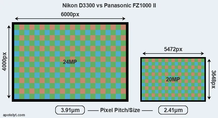 | Sensor Specs | Nikon D3300 | Panasonic FZ1000 II |