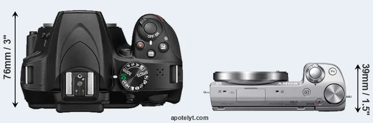 | 15. | Sony NEX-5 | 111 mm | 59 mm | 38 mm | 287 g | 330 | n | May 2010 | US$ 699 | ebay.com | |
