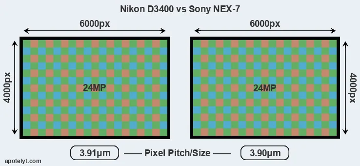 | Sensor Specs | Nikon D3400 | Sony NEX-7 |