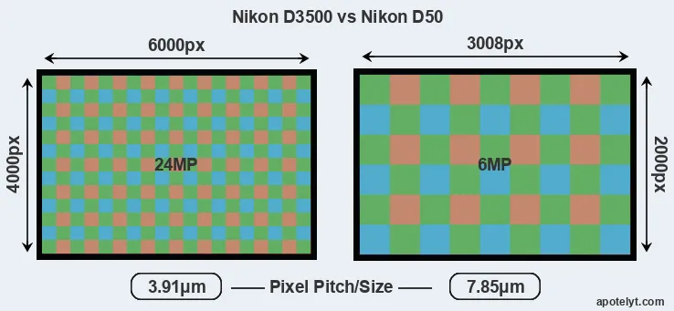 | Sensor Specs | Nikon D3500 | Nikon D50 |