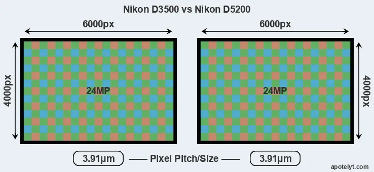 | Sensor Specs | Nikon D3500 | Nikon D5200 |