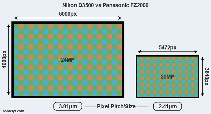 | Sensor Specs | Nikon D3500 | Panasonic FZ2000 |