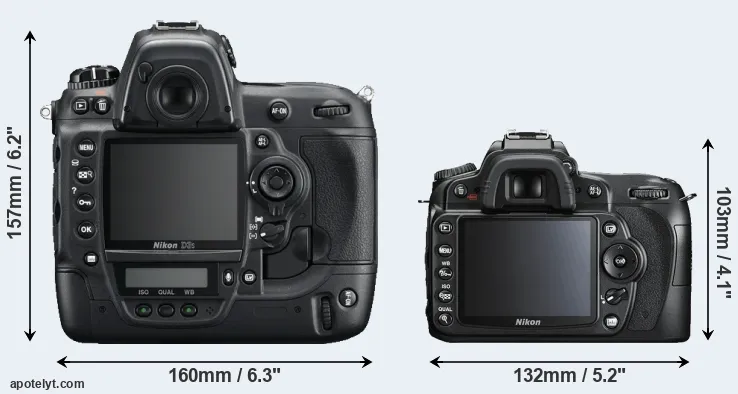 | 6. | Nikon D2Xs | 158 mm | 150 mm | 86 mm | 1252 g | 3800 | Y | Jun 2006 | US$ 4 699 | ebay.com | |