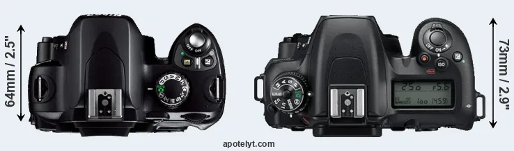 | 15. | Nikon D7000 | 132 mm | 105 mm | 77 mm | 780 g | 1050 | Y | Sep 2010 | US$ 1 499 | ebay.com | |