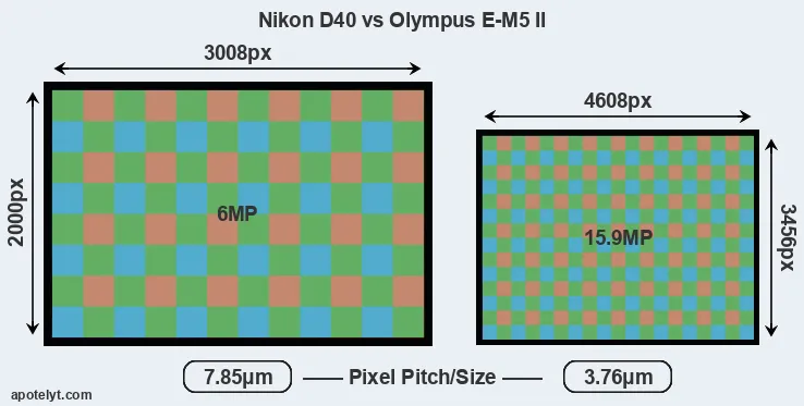 | Sensor Specs | Nikon D40 | Olympus E-M5 II |