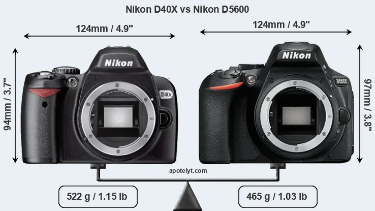 | Body Specs | Nikon D40X | Nikon D5600 |