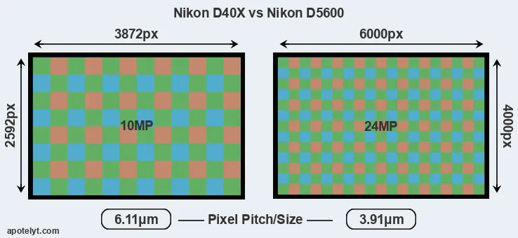 | Sensor Specs | Nikon D40X | Nikon D5600 |