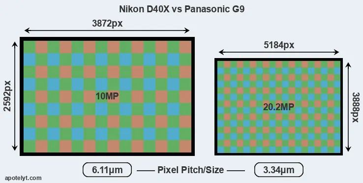 | Sensor Specs | Nikon D40X | Panasonic G9 |