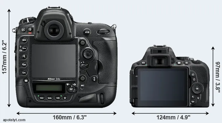 The above size and weight comparisons are to some extent incomplete since they do not consider the interchangeable lenses that both of these cameras require. A larger imaging sensor (as in the D4S) will tend to go along with bigger and heavier lenses, while more compact options are available for the smaller-sensor camera (D5500). You can compare the optics available in the Nikon Lens Catalog.