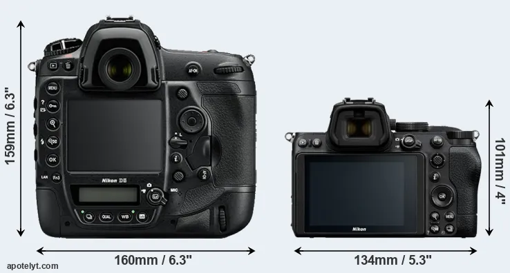 Going beyond this snapshot of core features and characteristics, what are the differences between the Nikon D5 and the Nikon Z5? Which one should you buy? Read on to find out how these two cameras compare with respect to their body size, their imaging sensors, their shooting features, their input-output connections, and their reception by expert reviewers.