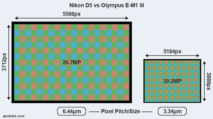 | Sensor Specs | Nikon D5 | Olympus E-M1 III |