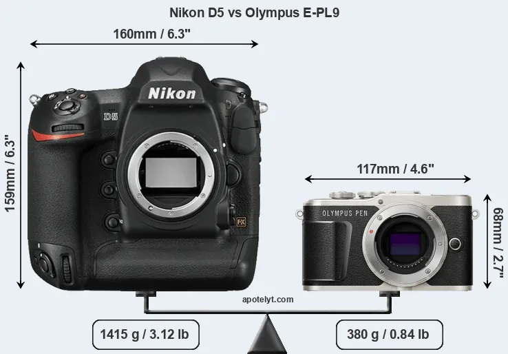 Size Nikon D5 vs Olympus E-PL9