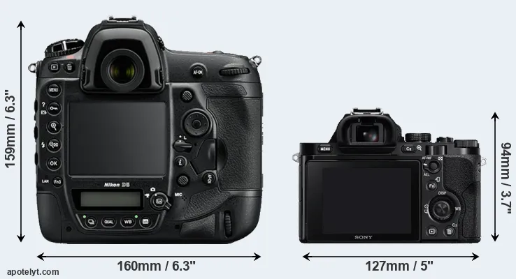 Going beyond this snapshot of core features and characteristics, what are the differences between the Nikon D5 and the Sony Alpha A7R? Which one should you buy? Read on to find out how these two cameras compare with respect to their body size, their imaging sensors, their shooting features, their input-output connections, and their reception by expert reviewers.