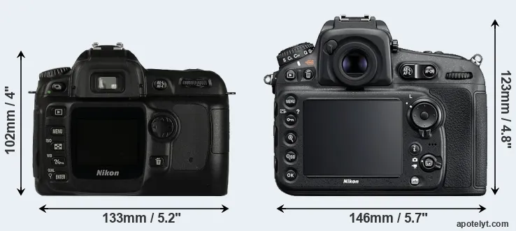 The above size and weight comparisons are to some extent incomplete since they do not consider the interchangeable lenses that both of these cameras require. A larger imaging sensor (as in the D810) will tend to go along with bigger and heavier lenses, while more compact options are available for the smaller-sensor camera (D50). You can compare the optics available in the Nikon Lens Catalog.