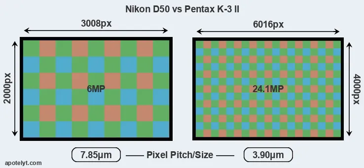 | Sensor Specs | Nikon D50 | Pentax K-3 II |