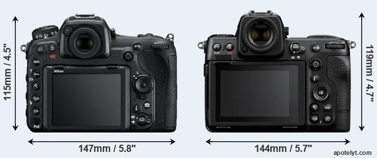 If the front view area (width x height) of the cameras is taken as an aggregate measure of their size, the Nikon Z8 is somewhat larger (1 percent) than the Nikon D500. Moreover, the Z8 is markedly heavier (6 percent) than the D500. In this context, it is worth noting that both cameras are splash and dust-proof and can, hence, be used in inclement weather conditions or harsh environments.
