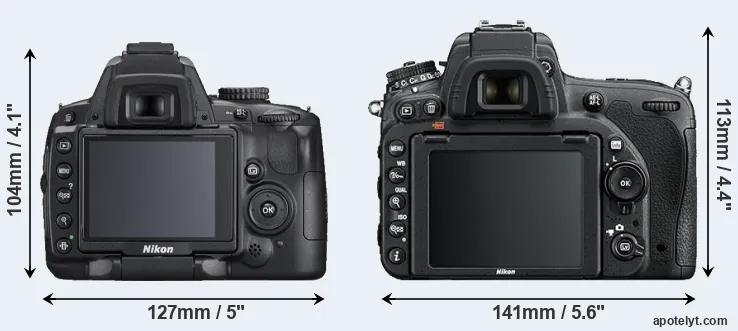 | 5. | Nikon D60 | 126 mm | 94 mm | 64 mm | 522 g | 500 | n | Jan 2008 | US$ 629 | ebay.com | |