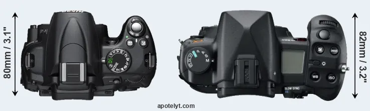 | 1. | Nikon D5000 | 127 mm | 104 mm | 80 mm | 590 g | 510 | n | Apr 2009 | US$ 749 | ebay.com | |