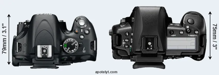 | 7. | Nikon D5000 | 127 mm | 104 mm | 80 mm | 590 g | 510 | n | Apr 2009 | US$ 749 | ebay.com | |