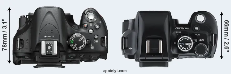 | 1. | Nikon D5200 | 129 mm | 98 mm | 78 mm | 555 g | 500 | n | Nov 2012 | US$ 749 | ebay.com | |