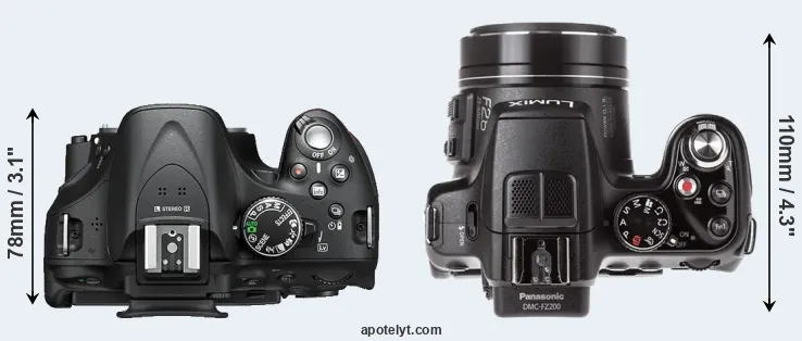 | Body Specs | Nikon D5200 | Panasonic FZ200 |