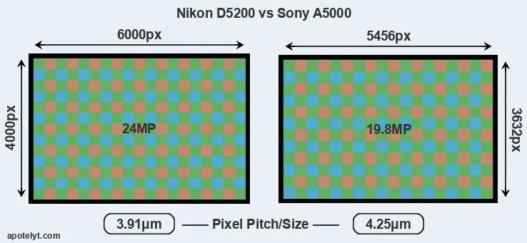 | Sensor Specs | Nikon D5200 | Sony A5000 |