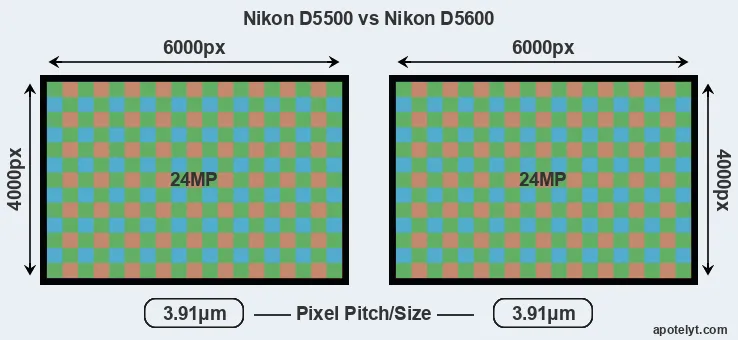 | Sensor Specs | Nikon D5500 | Nikon D5600 |