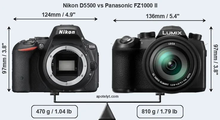 | Body Specs | Nikon D5500 | Panasonic FZ1000 II |