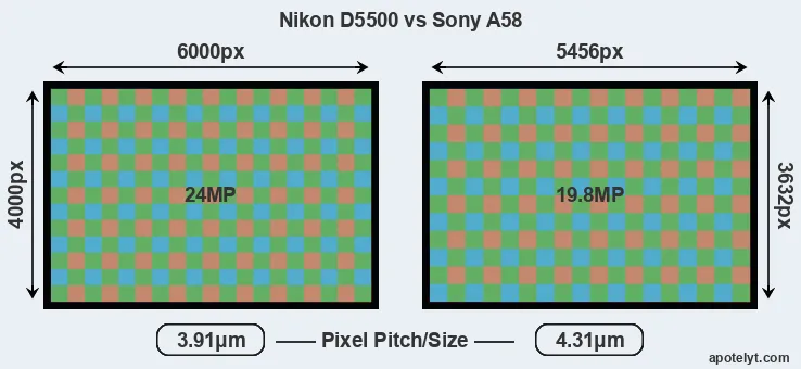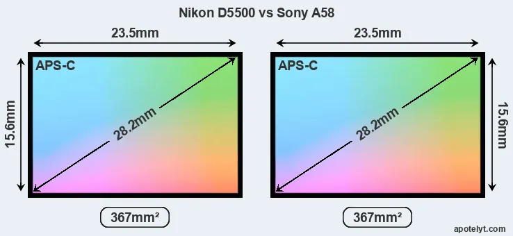| Sensor Specs | Nikon D5500 | Sony A58 |