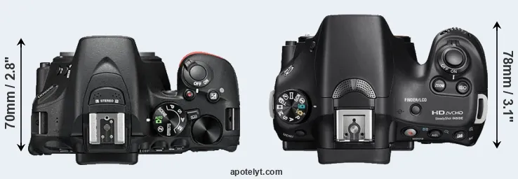 | 11. | Nikon D5600 | 124 mm | 97 mm | 70 mm | 465 g | 970 | n | Nov 2016 | US$ 699 | ebay.com | |