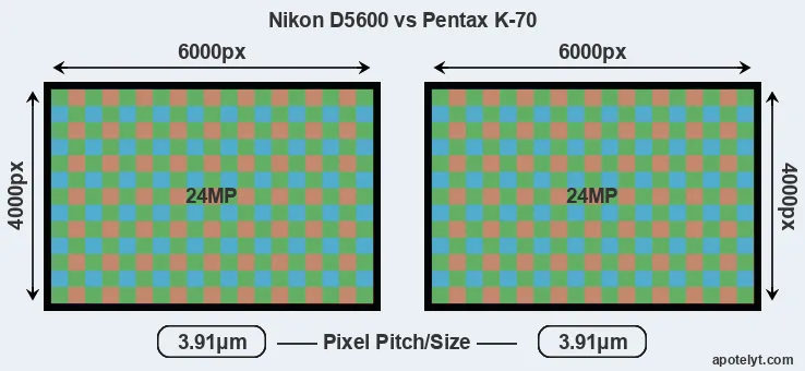 | Sensor Specs | Nikon D5600 | Pentax K-70 |
