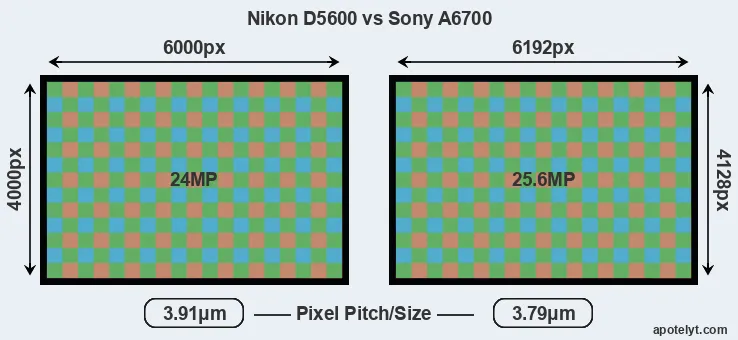 | Sensor Specs | Nikon D5600 | Sony A6700 |