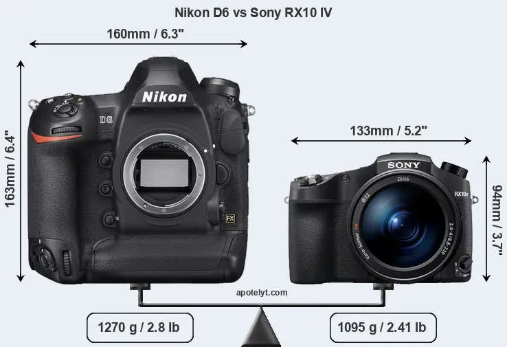 Size Nikon D6 vs Sony RX10 IV