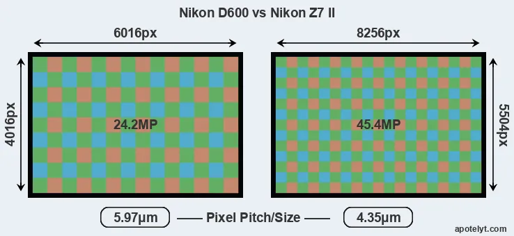 | Sensor Specs | Nikon D600 | Nikon Z7 II |