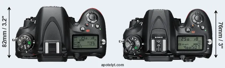 | 6. | Nikon D500 | 147 mm | 115 mm | 81 mm | 860 g | 1240 | Y | Jan 2016 | US$ 1 999 | ebay.com | |