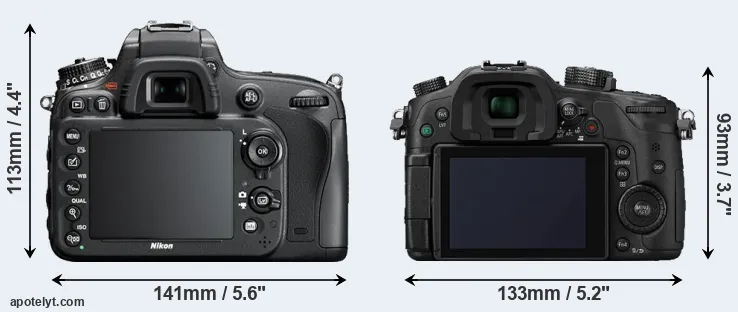 The side-by-side display below illustrates the physical size and weight of the Nikon D610 and the Panasonic GH4. The two cameras are presented according to their relative size. Three consecutive perspectives from the front, the top, and the back are available. All width, height and depth dimensions are rounded to the nearest millimeter.