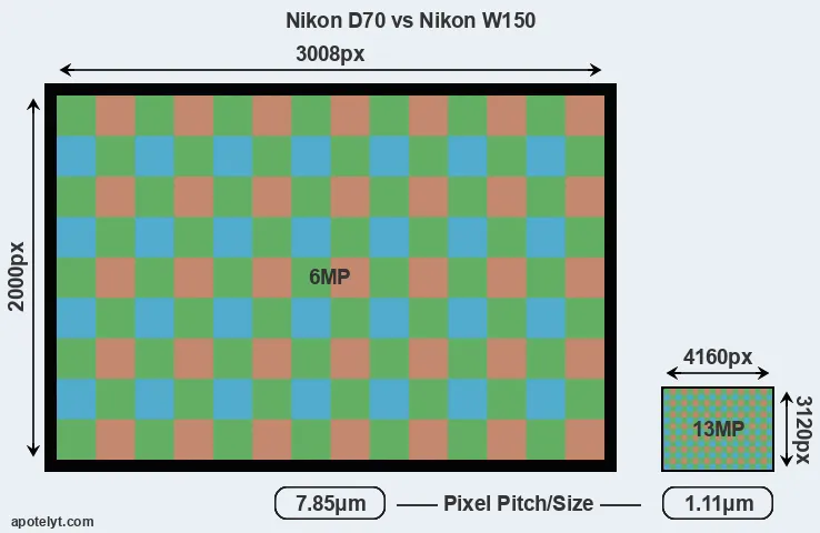 | Sensor Specs | Nikon D70 | Nikon W150 |