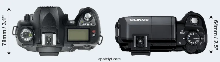 | 14. | Olympus E-1 | 141 mm | 104 mm | 81 mm | 738 g | 750 | Y | Jun 2003 | US$ 1 699 | ebay.com | |