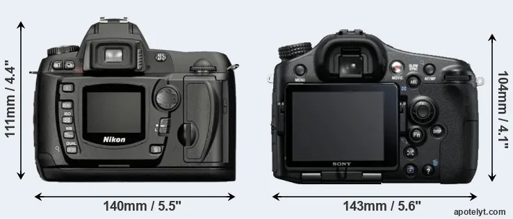 Going beyond this snapshot of core features and characteristics, what are the differences between the Nikon D70 and the Sony Alpha SLT-A77? Which one should you buy? Read on to find out how these two cameras compare with respect to their body size, their imaging sensors, their shooting features, their input-output connections, and their reception by expert reviewers.