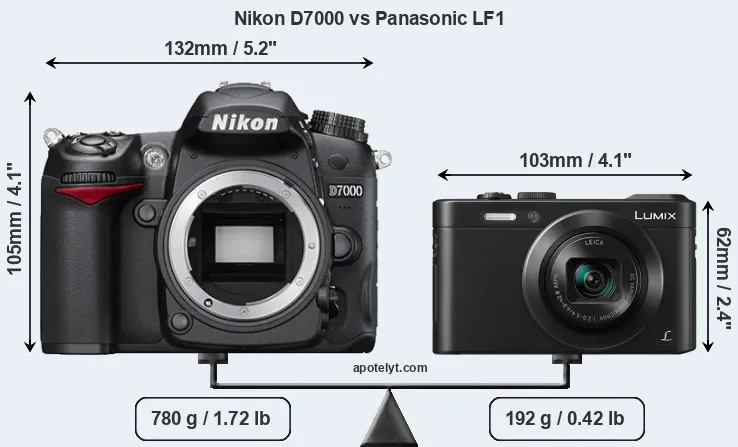 If the front view area (width x height) of the cameras is taken as an aggregate measure of their size, the Panasonic LF1 is considerably smaller (54 percent) than the Nikon D7000. It is worth mentioning in this context that the D7000 is splash and dust resistant, while the LF1 does not feature any corresponding weather-sealing.