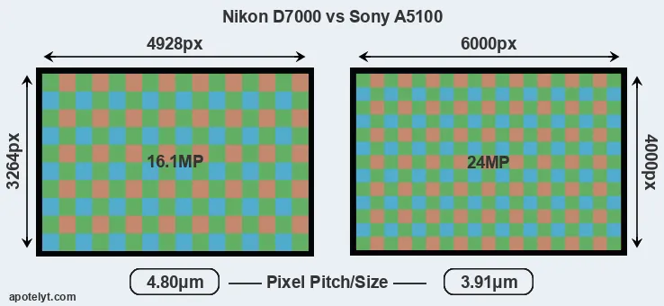 | Sensor Specs | Nikon D7000 | Sony A5100 |