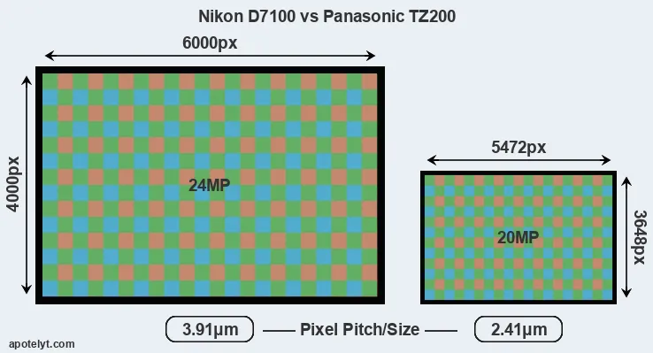 | Sensor Specs | Nikon D7100 | Panasonic TZ200 |