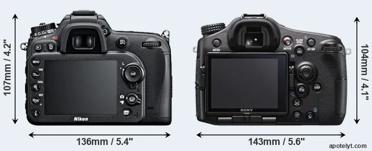 Going beyond this snapshot of core features and characteristics, what are the differences between the Nikon D7100 and the Sony Alpha SLT-A77 II? Which one should you buy? Read on to find out how these two cameras compare with respect to their body size, their imaging sensors, their shooting features, their input-output connections, and their reception by expert reviewers.