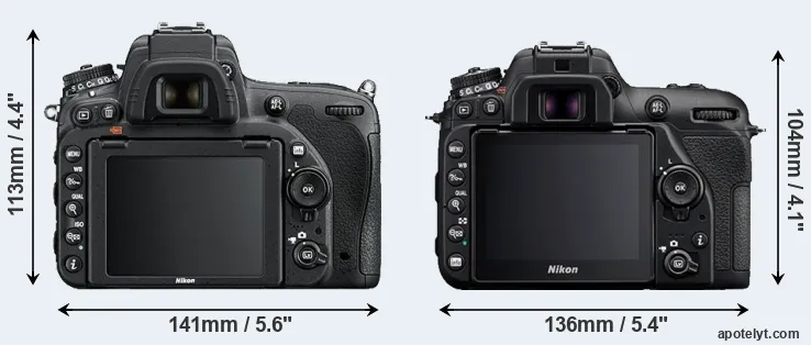 The above size and weight comparisons are to some extent incomplete since they do not consider the interchangeable lenses that both of these cameras require. A larger imaging sensor (as in the D750) will tend to go along with bigger and heavier lenses, while more compact options are available for the smaller-sensor camera (D7500). You can compare the optics available in the Nikon Lens Catalog.
