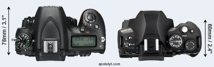 | 6. | Nikon D610 | 141 mm | 113 mm | 82 mm | 850 g | 900 | Y | Oct 2013 | US$ 1 999 | ebay.com | |